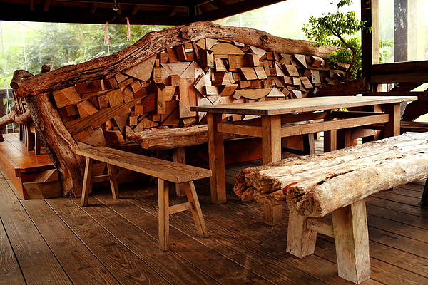 這種則是長凳的形式,不過椅子背後那塊木板的裝飾倒是很漂亮